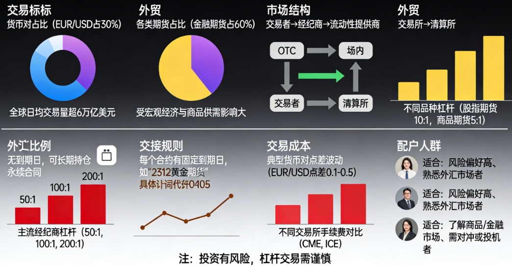在金融投资市场中,炒外汇与期货均属于热门的杠杆交易品种,二者都支持多空双向操作,但其交易逻辑、市场机制、风险特性等存在显著差异。很多投资者容易混淆二者,本文从交易核心维度、市场结构、风险成本等多方面,详细解析炒外汇与期货的不同之处,帮助投资者精准区分、理性选择。