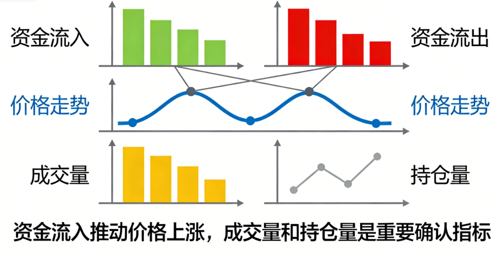 资金流向的核心作用,是验证价格趋势的持续性,而非单独判断方向,新手需记住2个核心逻辑,避免本末倒置: