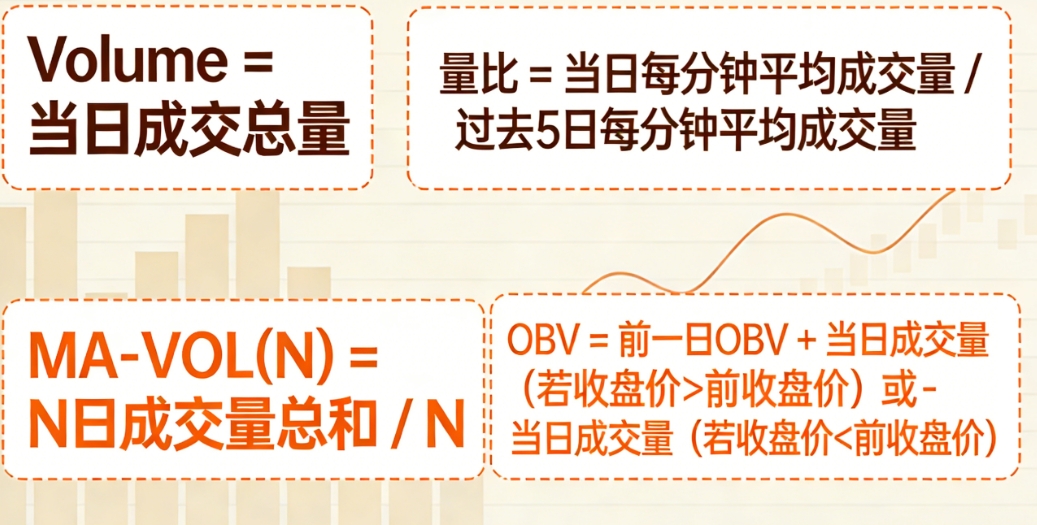 – 趋势延续判断:价格处于上升趋势,且成交量均线呈现多头排列(MA5_VOL>MA10_VOL>MA20_VOL),说明量能持续支撑价格上涨,趋势大概率延续;价格处于下跌趋势,成交量均线呈现空头排列,说明量能持续走弱,下跌趋势难以反转,不宜盲目抄底。
